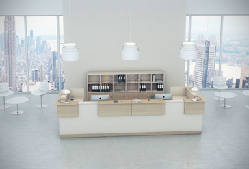 Стойка ресепшн очень важна для компании. Она встречает посетителей, и по ней они составляют свое первое впечатление о компании. Поэтому к выбору ресепшн (даже если он будет эконом класса), нужно подойти очень внимательно. Старайтесь выбрать изящную стойку, которая бы сочеталась с интерьером офиса.